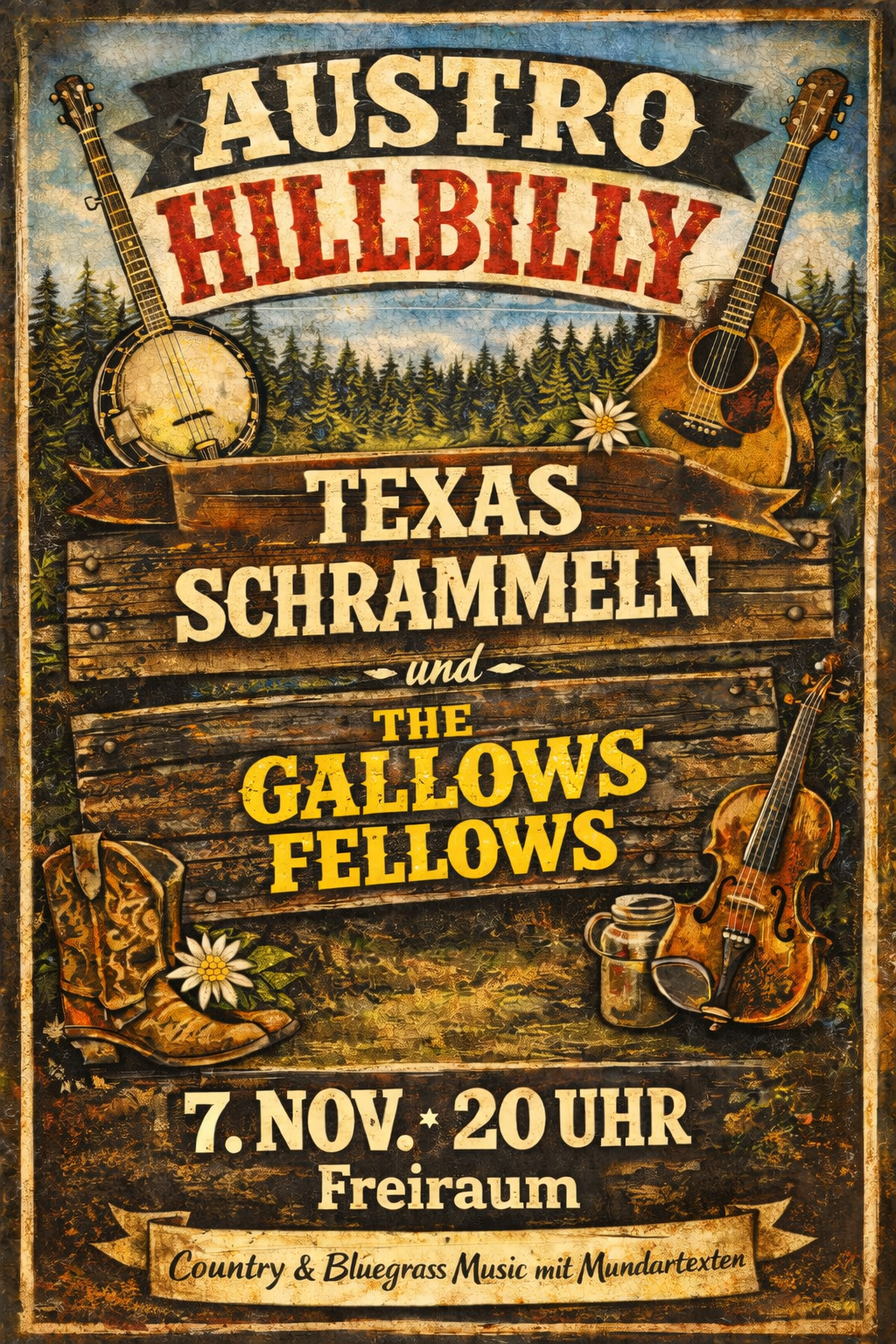 Nachdem ich vor einiger Zeit den Song „Baxtertown“, indem es um´s Nachhauskommen ins Waldviertel geht, in Englisch geschrieben habe, war es anlässlich der 850 Jahr Feier der Marktgemeinde Echsenbach gewiss für unseren Auftritt in der Heimat eine Mundartvariante zu texten. Obwohl ich meine Lieblingstextzeile aus den Lucky Luke Heften („I´m a poor lonesome Cowboy and a long way from home“) opfern musste, war das der Anfang der Idee. Mittlerweile sind viele Songs aus eigener und fremder Feder dazugekommen, sodass wir im November an die Öffentlichkeit gehen. Bei der ersten Austro Hillbilly Nacht in St. Pölten. Mehr unter „Veranstaltungen“